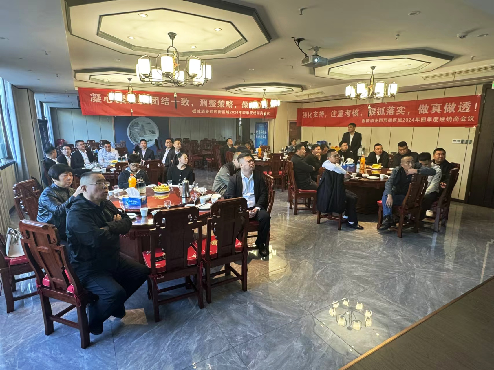 板城酒業(yè)銷售副總經(jīng)理?xiàng)钭谳x,板城酒業(yè)邢臺(tái)戰(zhàn)區(qū)龍印部區(qū)域經(jīng)理吳越,邢臺(tái)區(qū)域全體經(jīng)銷商、團(tuán)購(gòu)商以及邢臺(tái)區(qū)域業(yè)務(wù)經(jīng)理及業(yè)務(wù)人員共同出席會(huì)議。